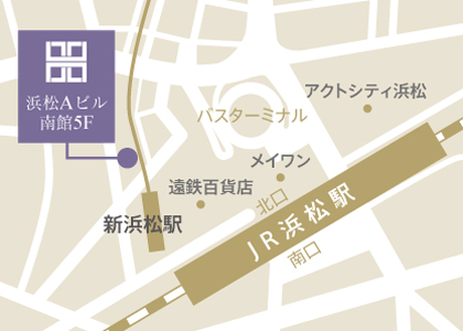 ホーム> 診療時間・アクセス 診療時間・アクセス 診療時間 診療科目 診療時間 月 火 水 木 金 土 日 インプラント 審美 一般 10:00~18:00 ○ □ × ○ × × △ 矯正診療 14:00~19:00 × ○ × × ○ ○ × △第1・3日曜は診療 □第2・4火曜は診療 休診日 水・日(※第1・3日曜、第2・4火曜は診療) アクセス JR浜松駅北口、西へ徒歩2分。 遠州鉄道新浜松駅すぐそば 〒430-0933 静岡県浜松市中区鍛冶町140-4 浜松Aビル南館5F ページの先頭へ戻る